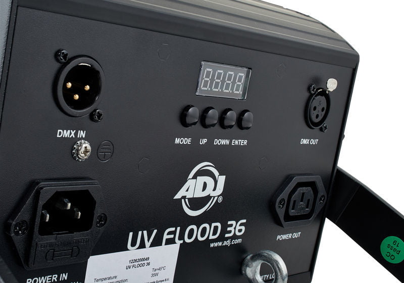 12x 3 W UV LED (approx. 50,000 operating hours)3 Operating modes: Music control and DMX mode as well as dimmer thomann mode
