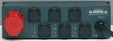 WPD 323This power distributor designed in a 19 rack format features a 32 A tri-phase connector (3P+N+T) and 6 schuko connectors for output (16 A each). It also has a protection circuit-breaker on each phase, other circuit breaker for residual currents and a 32 A CEE output connector for auxiliary supply.